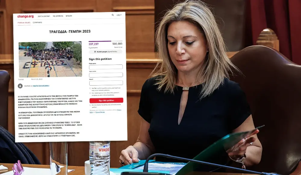 Τέμπη: 337 χιλιάδες υπογραφές έχει συγκεντρώσει το ψήφισμα της Μ. Καρυστιανού για απόδοση δικαιοσύνης