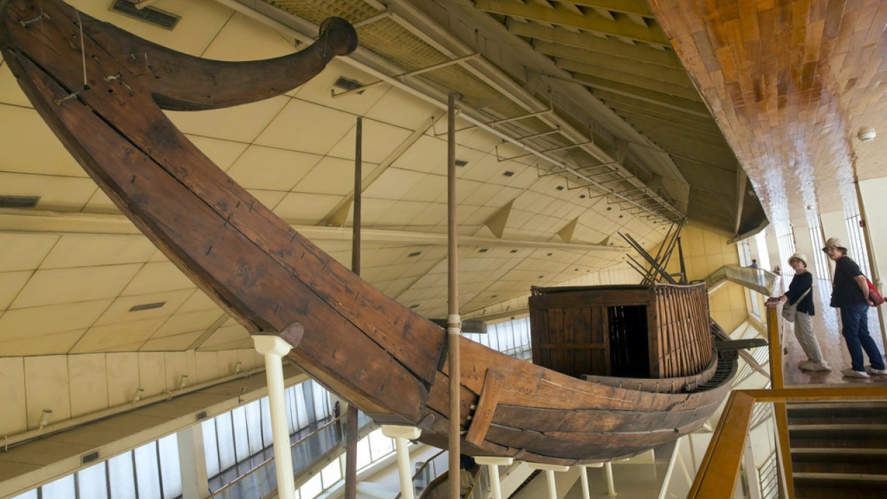 Η αρχαία ηλιακή βάρκα του Χέοπα εκτίθεται σε ειδικά διαμορφωμένο μουσείο στην Αίγυπτο.