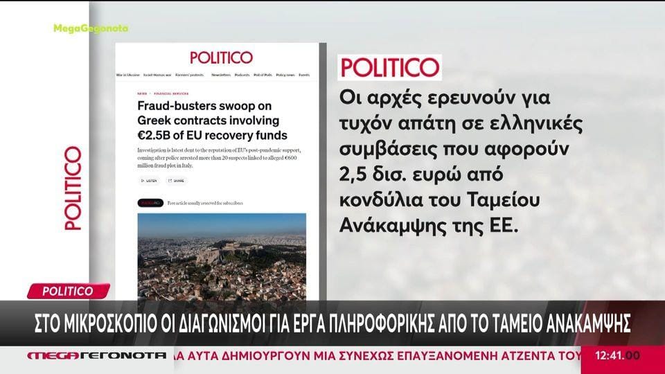 11 Απρ Στο μικροσκόπιο οι διαγωνισμοί για έργα πληροφορικής από το Ταμείο Ανάκαμψης -Έρευνα για απάτη Διαβάστε περισσότερα...