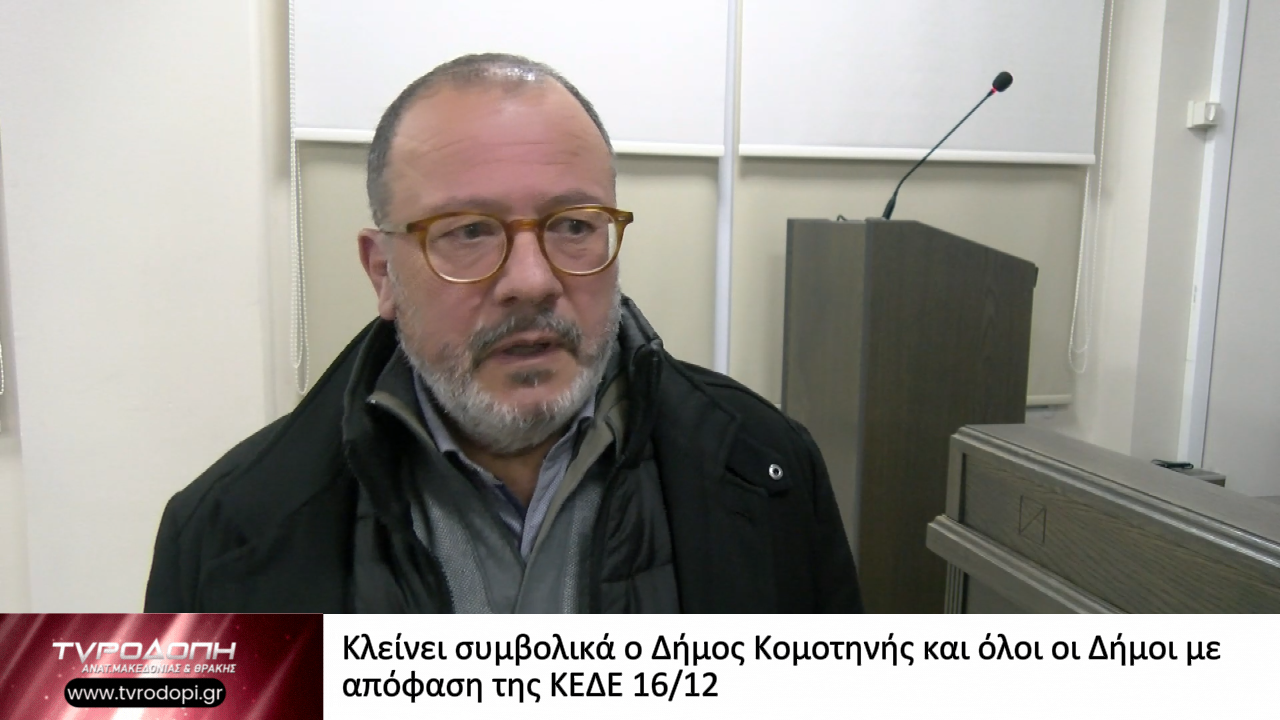 13 Δεκ Κλείνει συμβολικά ο Δήμος Κομοτηνής και όλοι οι Δήμοι με απόφαση της ΚΕΔΕ 16/12 Διαβάστε περισσότερα...
