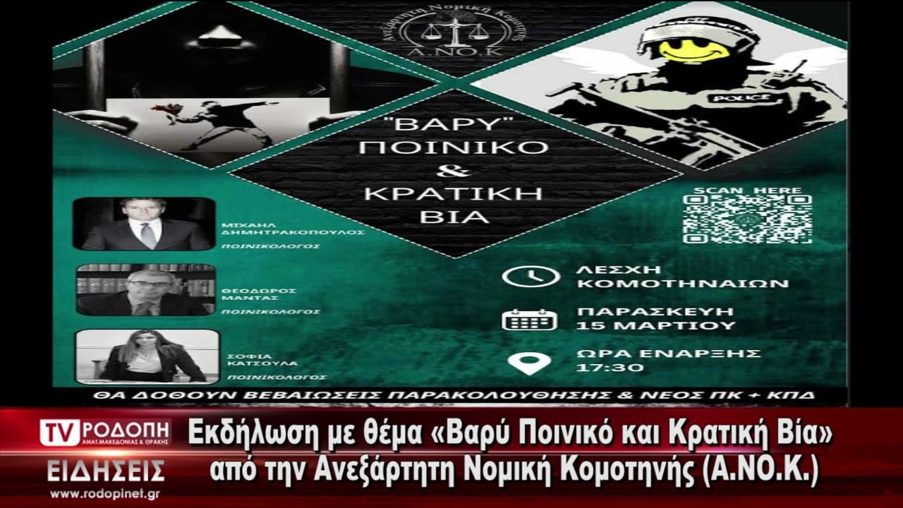 Εκδήλωση με θέμα «Βαρύ Ποινικό και Κρατική Βία» από την Ανεξάρτητη Νομική Κομοτηνής (Α.ΝΟ.Κ.)