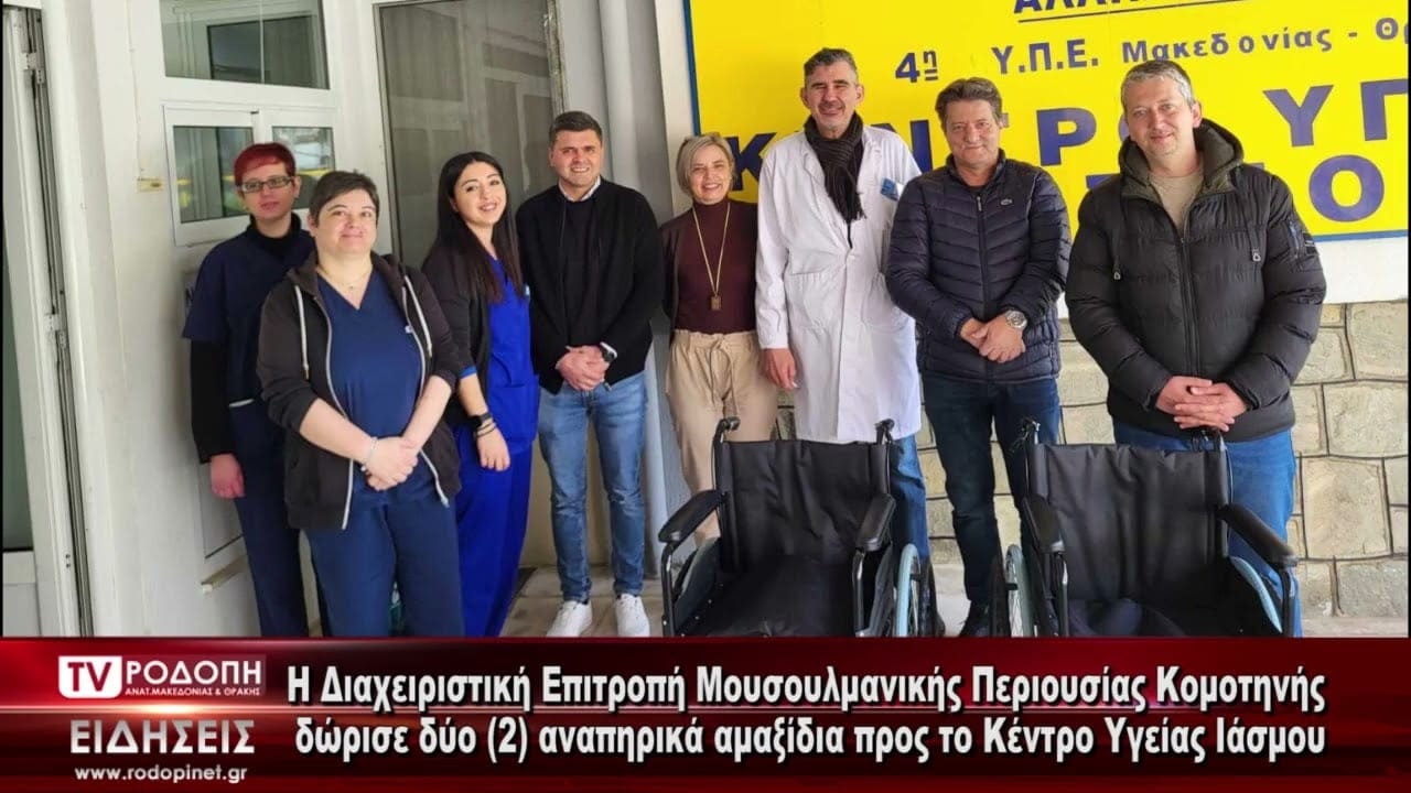 Συνεχίζοντας την φιλανθρωπική της δράση με στόχο την βοήθεια σε συνανθρώπους μας η η Διαχειριστική Επιτροπή Μουσουλμανικής Περιουσίας Κομοτηνής δώρισε δύο (2) αναπηρικά αμαξίδια προς το Κέντρο Υγείας Ιάσμου Ν. Ροδόπης.