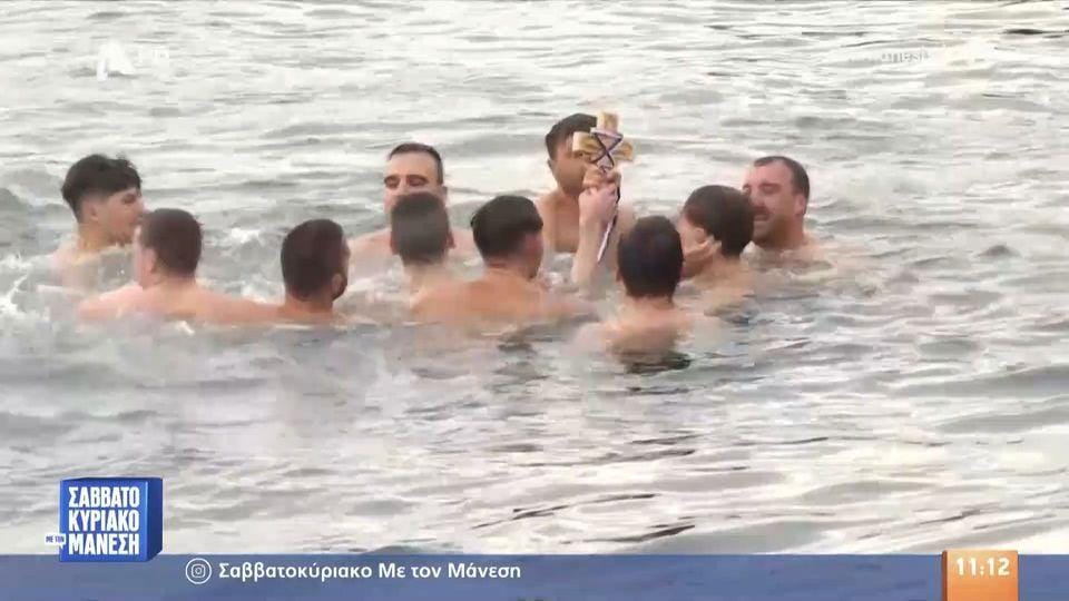 Δεκάδες ήταν οι κολυμβητές που έπεσαν στον Θερμαϊκό για τον Τίμιο Σταυρό, με τον μητροπολίτη Θεσσαλονίκης να τους δίνει την ευλογία του.