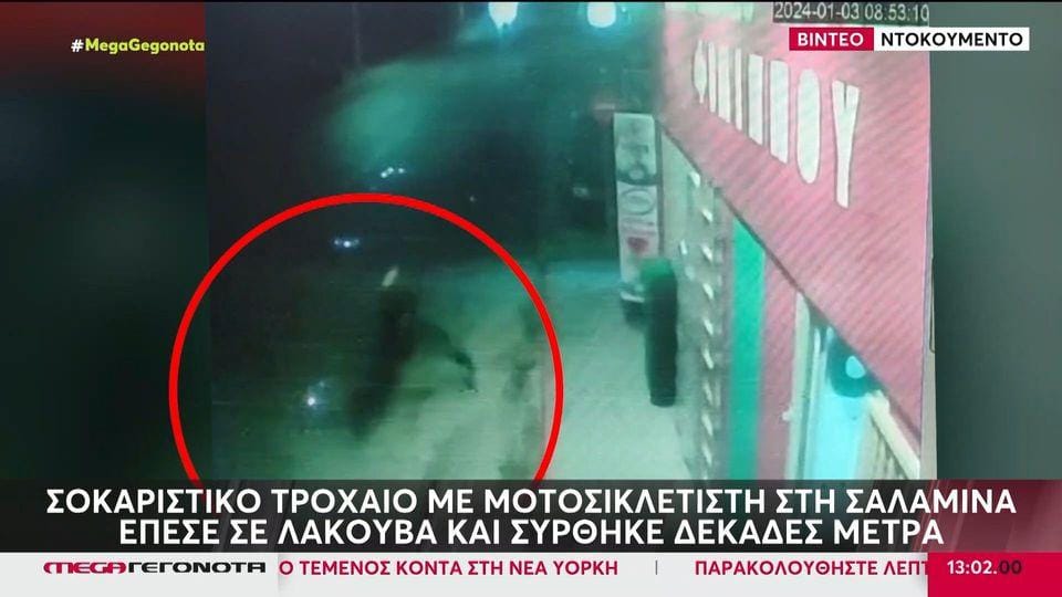 Σαλαμίνα: Μοτοσικλετιστής πέφτει σε λακκούβα και σέρνεται στο έδαφος