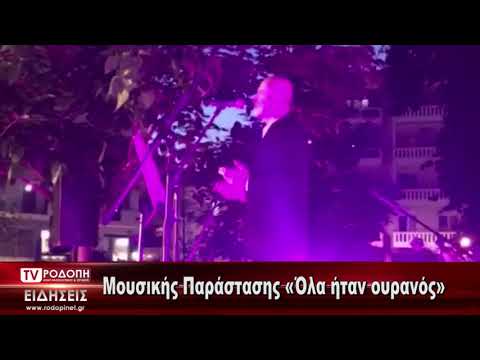 Η Μουσική Παράσταση «Όλα ήταν ουρανός» λόγω καιρικών συνθηκών η προγραμματισμένη για 16 Μαΐου Παράσταση «Όλα ήταν ουρανός» με τον Γιάννη Κάλαρη στην Αυλή της Τσανακλείου, η οποία εντάσσεται στο πρόγραμμα των «Ελευθερίων Θράκης 2024», πραγματοποιήθηκε το Σάββατο 18 Μαΐου στις 20.30 στον ίδιο χώρο. Παρουσία πλήθος κόσμος.