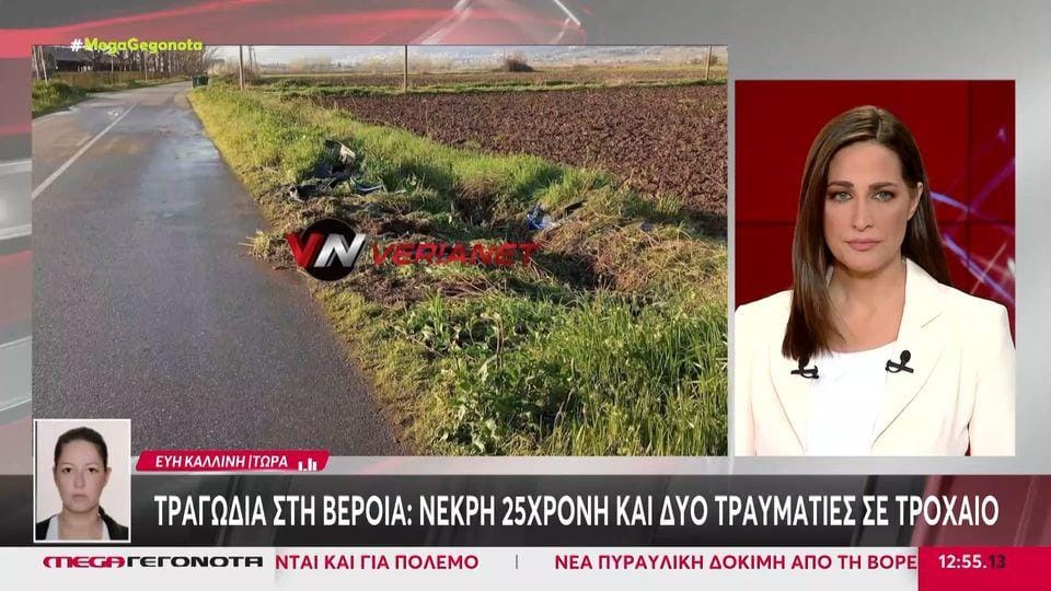 Μετωπική σύγκρουση σημειώθηκε τις πρώτες μεταμεσονύχτιες ώρες της Καθαράς Δευτέρας σε επαρχιακό δρόμο της Βέροιας, με αποτέλεσμα να χάσει τη ζωή της μια νεαρή κοπέλα και δύο νεαροί να τραυματιστούν.