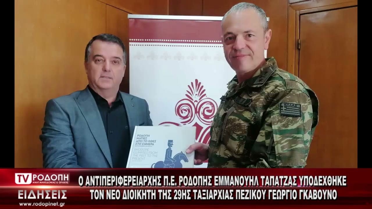 Ο ΑΝΤΙΠΕΡΙΦΕΡΕΙΑΡΧΗΣ Π.Ε. ΡΟΔΟΠΗΣ ΕΜΜΑΝΟΥΗΛ ΤΑΠΑΤΖΑΣ ΥΠΟΔΕΧΘΗΚΕ ΤΟΝ ΝΕΟ ΔΙΟΙΚΗΤΗ ΤΗΣ 29ΗΣ ΤΑΞΙΑΡΧΙΑΣ ΠΕΖΙΚΟΥ ΓΕΩΡΓΙΟ ΓΚΑΒΟΥΝΟ