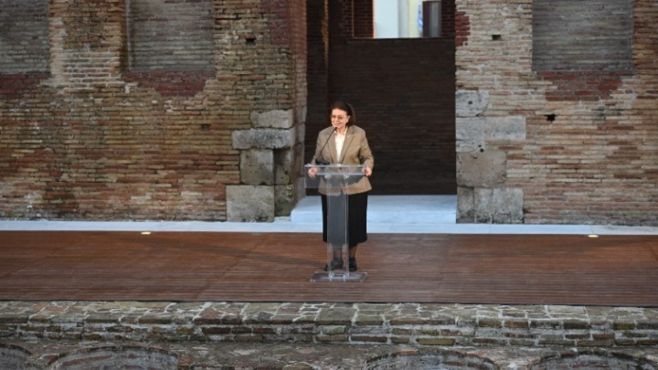 «Σήμερα», όπως ανέφερε χαρακτηριστικά η υπουργός Πολιτισμού, «φθάσαμε σε αυτό το πολύ όμορφο και ωραίο αποτέλεσμα», συμπληρώνοντας: «Είναι όμορφο, γιατί ικανοποιεί την αισθητική μας και είναι ωραίο, γιατί ωρίμασε μελετητικά και αποκαταστάθηκε».