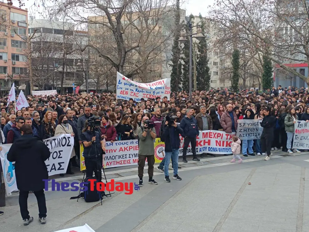 «Στείλε όταν φτάσεις, δεν έφτασες ποτέ» – Χιλιάδες διαδηλωτές στην πλατεία της Λάρισας