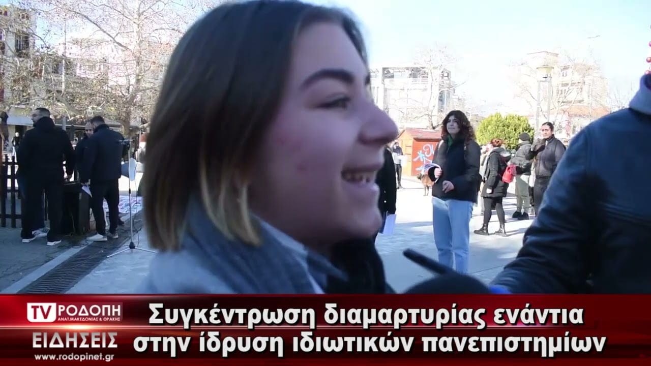 Συγκέντρωση διαμαρτυρίας πραγματοποιήσαν φοιτητές, εκπαιδευτικοί και εργαζόμενοι του δημοσίου και ιδιωτικού τομέας ενάντια στην ίδρυση ιδιωτικών πανεπιστημίων, το πρωί της Πέμπτης 11 Ιανουαρίου 2024 στην κεντρική πλατεία Κομοτηνής.