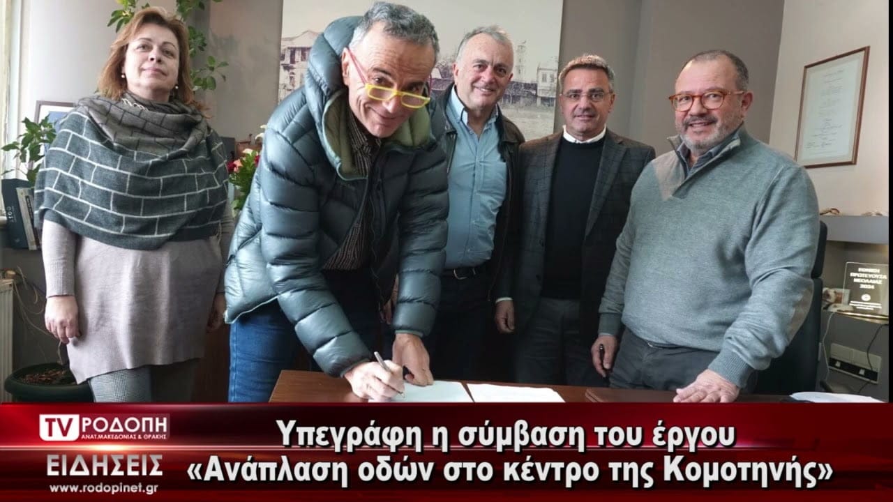 Υπεγράφη σήμερα το πρωί στο γραφείο Δημάρχου Κομοτηνής η σύμβαση του έργου «Ανάπλαση οδών στο κέντρο της Κομοτηνής», από τον Δήμαρχο Ιωάννη Γκαράνη και τον εκπρόσωπο του αναδόχου, ΔΗΜΗΤΡΕΙΟΣ ΑΝΩΝΥΜΗ ΟΙΚΟΔΟΜΙΚΗ ΤΕΧΝΙΚΗ ΚΑΙ ΕΜΠΟΡΙΚΗ ΕΤΑΙΡΕΙΑ ΚΑΤΑΣΚΕΥΩΝ, Ιωάννη Κωνσταντινίδη, παρουσία του Αντιδημάρχου Έργων, Προγραμματισμού, Πολεοδομίας και Χωροταξικού Σχεδιασμού, Δημήτρη Καρασταύρου και της Προϊσταμένης της Διεύθυνσης Τεχνικών Υπηρεσιών, Δέσποινας Πάσσου.